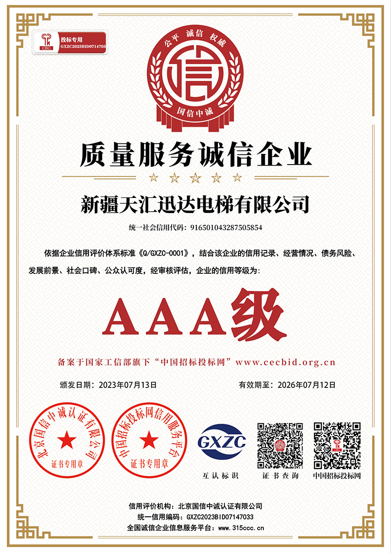 您現(xiàn)在位置:新疆電梯-烏魯木齊電梯-新疆天迅匯達(dá)電梯有限公司 >> 公司簡介 >> 榮譽(yù)資質(zhì) >> 瀏覽文章